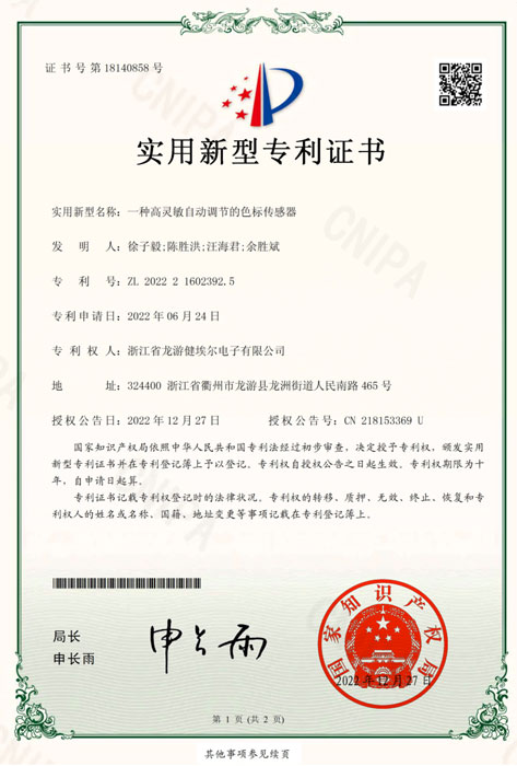智能三色色标传感器软件证书